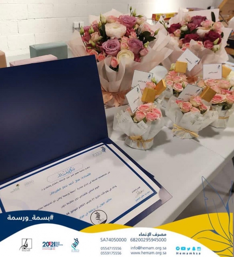 كما تم تكريم المدربتين وتقديم شهادات شكر من همم على عطائهم معنا.