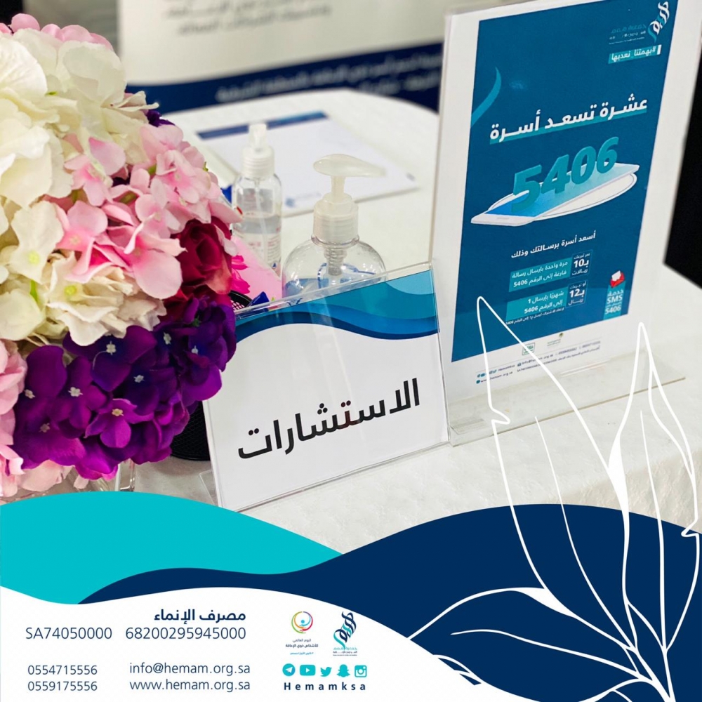 تضمن الركن تعريف بخدمات همم وألعاب تثقيفية ترفيهية وجوائز مقدمة للزوار بالإضافة إلى ركن تقديم الاستشارات المجانية بحضور المستشار والأخصائي النفسي أ.هيا المبارك.