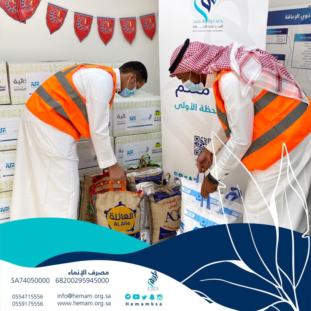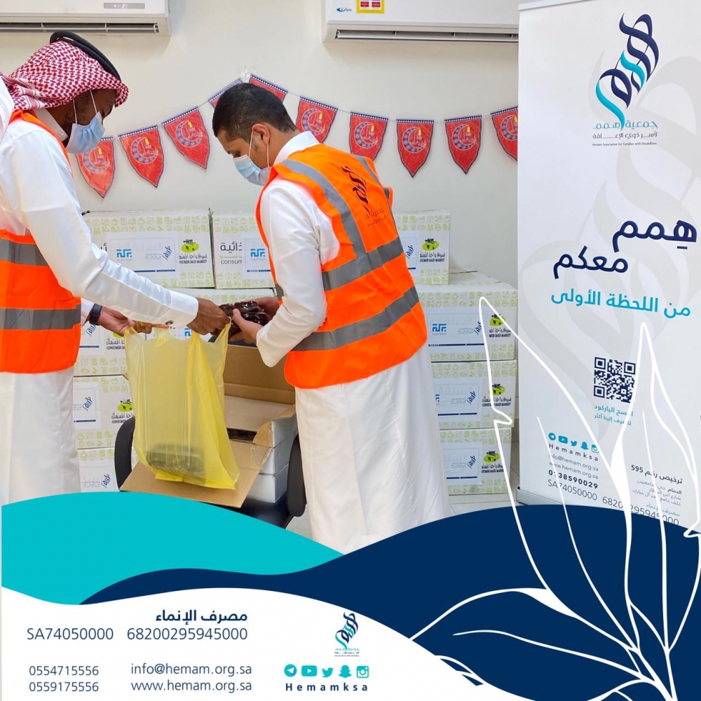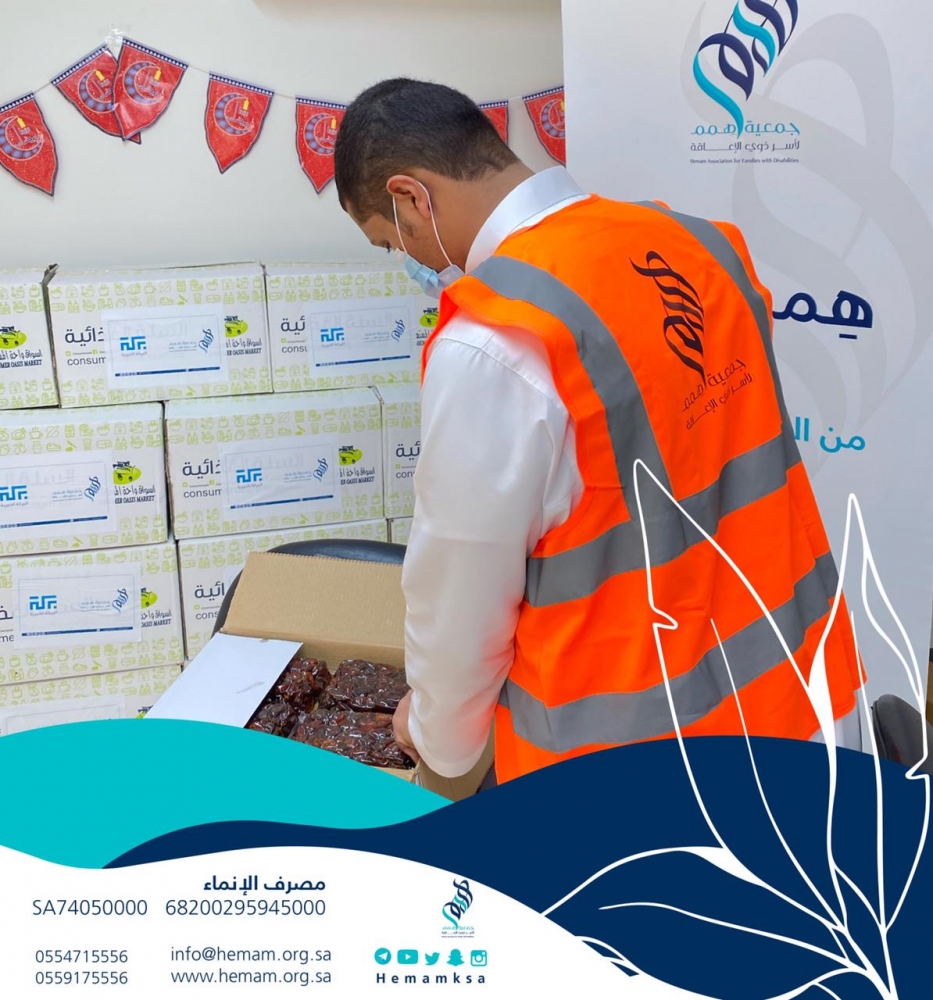 فريق همم التطوعي ينظم ويوزع السلال الغذائية الرمضانية على أسرنا من ذوي الإعاقة والتي تم توفيرها من أخواننا في جمعية البركة